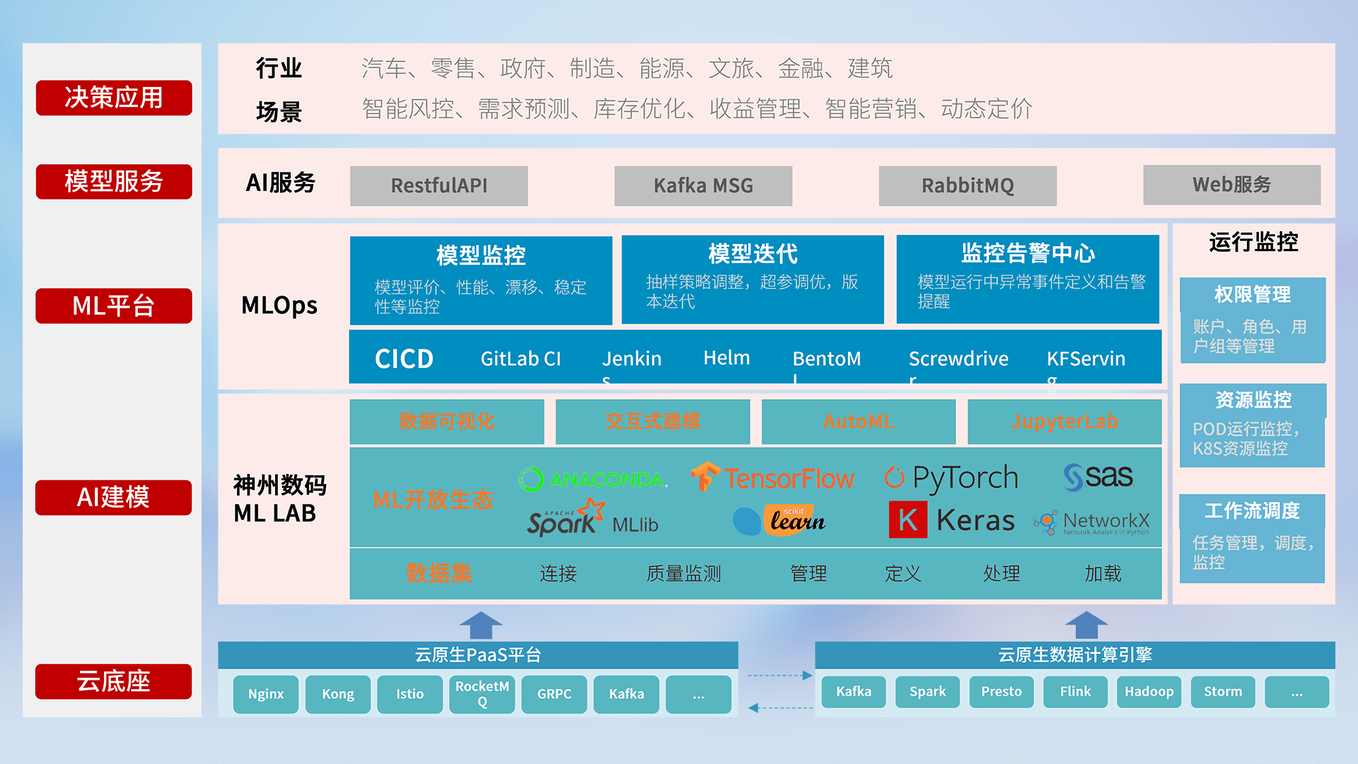 数据+模型双引擎驱动,,,,面向智能服务场景,,快速灵活利用AI技术,,支持业务决策,,助力企业智能化转型破局。。